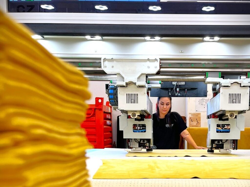 Vanta, inoltre, di un innovativo Centro Taglio caratterizzato da macchine a controllo numerico sia per i pellami che per i tessuti e i materiali di rinforzo necessari per la composizione degli articoli.