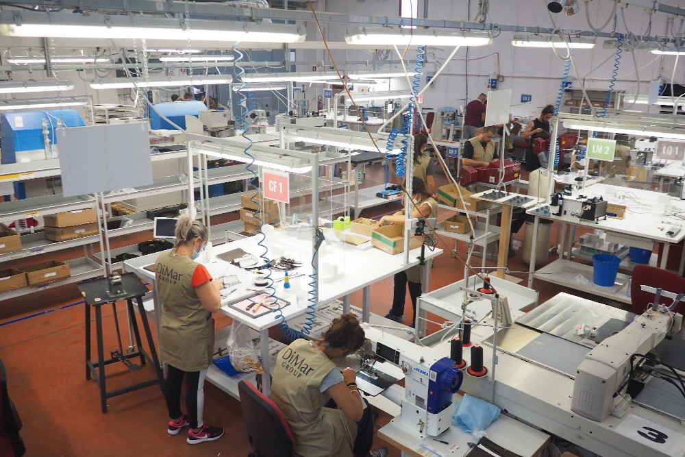 Moltissime sono le aziende dell’indotto, guidate spesso da ex dipendenti, cresciute grazie a Dimar Group. Spiega Martinelli: “Quest’anno il nostro fatturato calerà di circa il 35% a causa del coronavirus, in linea con i cali del settore a livello mondiale: se i turisti non viaggiano ovvio che non comprano nei negozi dove si vendono le borse di lusso. Ciononostante, anche grazie ai meccanismi di flessibilità, abbiamo conservato tutta la nostra forza occupazionale su cui abbiamo ulteriormente investito in termini di formazione con la creazione della nostra Corporate University, nella speranza di recuperare anche parte di quella dei fornitori esterni alla ripresa del mercato nel 2021. Dimar Group durante il lockdown ha aperto anche una divisione medicale per la produzione di mascherine chirurgiche di classe II CE, per dare seguito industriale alle tante forniture realizzate in maniera gratuita alla Asl di Viterbo, ai Comuni, alle associazioni”.